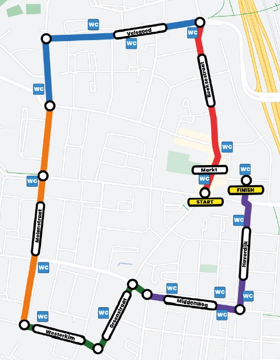 Bekijk op het kaartje waar de toiletvoorzieningen zich bevinden.